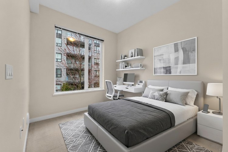 Welcome to Mayfair Place by Polygon! This bright west-facing 2-bedroom, 1-bathroom home offers 780 sq ft of thoughtfully designed living with a functional open-concept layout. The modern kitchen features granite/quartz countertops and stainless steel appliances. Both bedrooms are positioned side by side, with the primary bedroom offering a walk-in closet. The spacious bathroom includes double sinks, a bathtub, and separate shower. Enjoy energy-efficient geothermal heating and cooling. Residents have access to a 10,000 sq ft clubhouse with resort-style amenities including an outdoor pool, hot tub, fitness centre, theatre room, games room, lounge, and guest suite. Prime Richmond location steps to shopping, dining, and Walmart. Ideal for homeowners or investors.